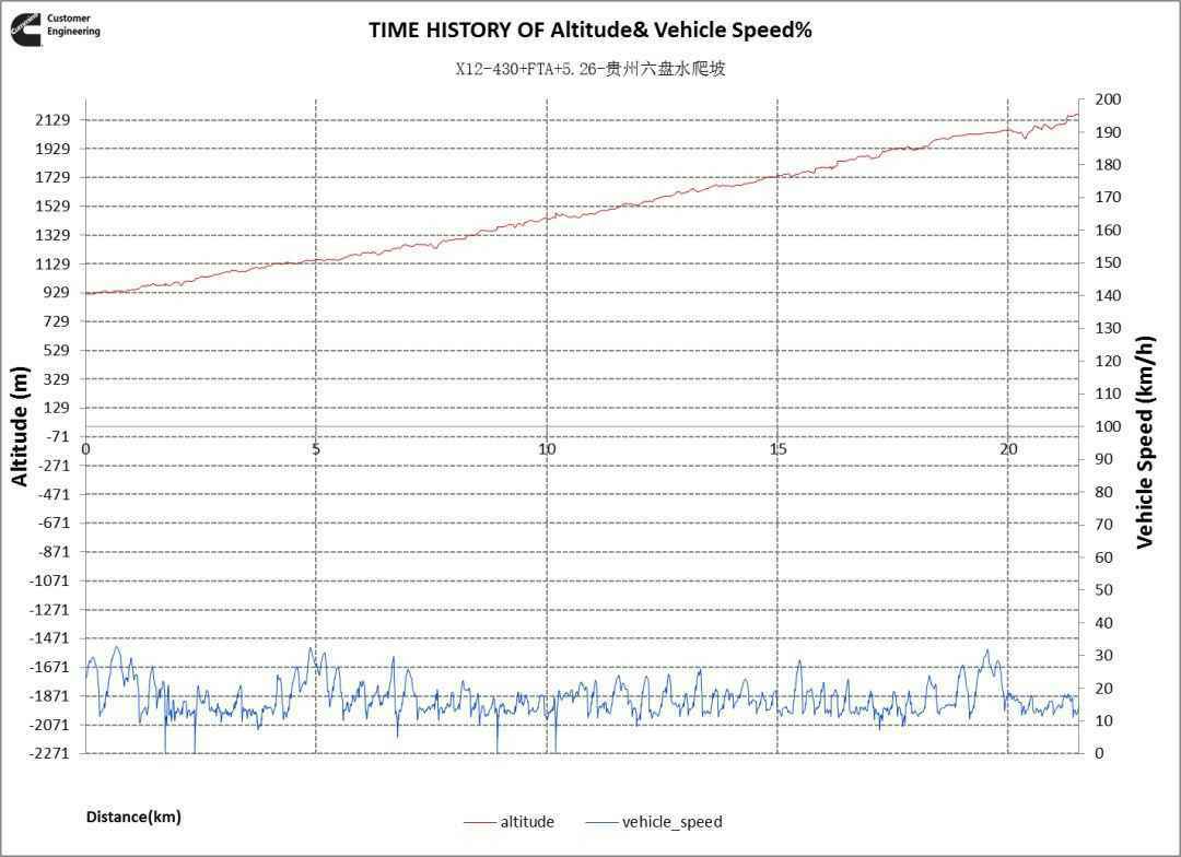数据分析结果显示:配置福康X12动力的欧曼自卸车辆经济性在全程运行和爬坡运行两个工况均优于其他车辆。